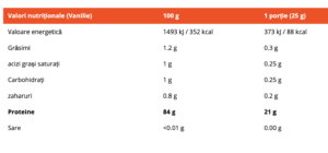 • -se mândrește cu până la 86% de conținut proteic ​în funcție de aromă